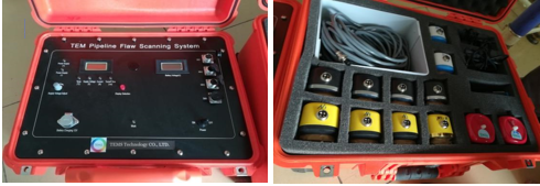 采用TEMS脈沖渦流3通道檢測系統(tǒng)進(jìn)行掃查,如圖2-2所示。該技術(shù)為非接觸式檢測,對現(xiàn)場工況要求不高,有效克服管體表面的涂層、粉塵、變形等工況,系統(tǒng)配合的手持外置式3通道探頭對管道體積形凹缺及壁厚減薄等具有很高的檢測能力??蓪?shí)時顯示管內(nèi)外壁減薄腐蝕、大面積點(diǎn)狀腐蝕、鼓包等缺陷腐蝕趨勢、位置和相對減薄深度等信息,在通過使用超聲測厚的手段進(jìn)行復(fù)核確認(rèn)。