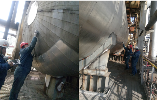 受LG渤?;瘜W(xué)有限公司委托,對現(xiàn)運(yùn)行中的17臺設(shè)備和36條管線進(jìn)行脈沖渦流檢測。保冷設(shè)備,保溫外層為呂皮/鐵皮保護(hù),中間層為隔熱棉和保冷材料。