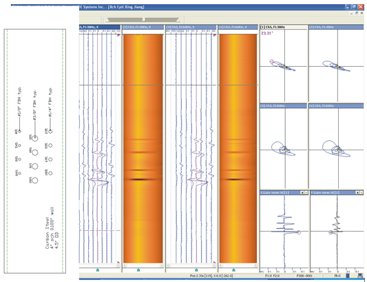 遠(yuǎn)場(chǎng)渦流檢測(cè)器有密集的檢測(cè)傳感器,能體現(xiàn)出缺陷的時(shí)鐘方向。這能增加缺陷的分辨率,即使檢測(cè)器在管線內(nèi)旋轉(zhuǎn)也能檢測(cè)出缺陷的準(zhǔn)確的時(shí)鐘方向。取得數(shù)據(jù)后,分析軟件能提供管線壁厚的精確信息。