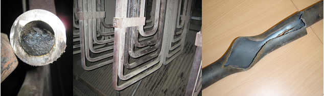 隨著我國國民經(jīng)濟的快速發(fā)展,超(超)臨界參數(shù)的火電機組已在全國蓬勃發(fā)展,這些機組的鍋爐根據(jù)不同的廠家工作溫度可達到571 585 606 615 620度,目前應用的管材基本上都是TP347H、TP347HFG、Super304H和HR3C. 這些不銹鋼管,在運行一段時間后,內(nèi)壁脫落的氧化皮,會聚集在管排水平段,形成凝結(jié)性的氧化物,當氧化物堆積到一定數(shù)量后,會引起堵管,局部過熱而造成爆管,停爐。另外所有爐型中,管排自夾管及其出汽側(cè)彎頭堆積脫落的氧化皮較多,鍋爐廠加工的異形接管焊縫退刀槽處基本上都是直角臺階,脫落的氧化皮通過此處變截面時,容易造成搭橋堆積,當爐膛存在較大熱偏差狀況時,偏差較大的管排就會超溫運行,很短的時間即可產(chǎn)生氧化皮脫落堵塞管徑,造成超溫爆管。